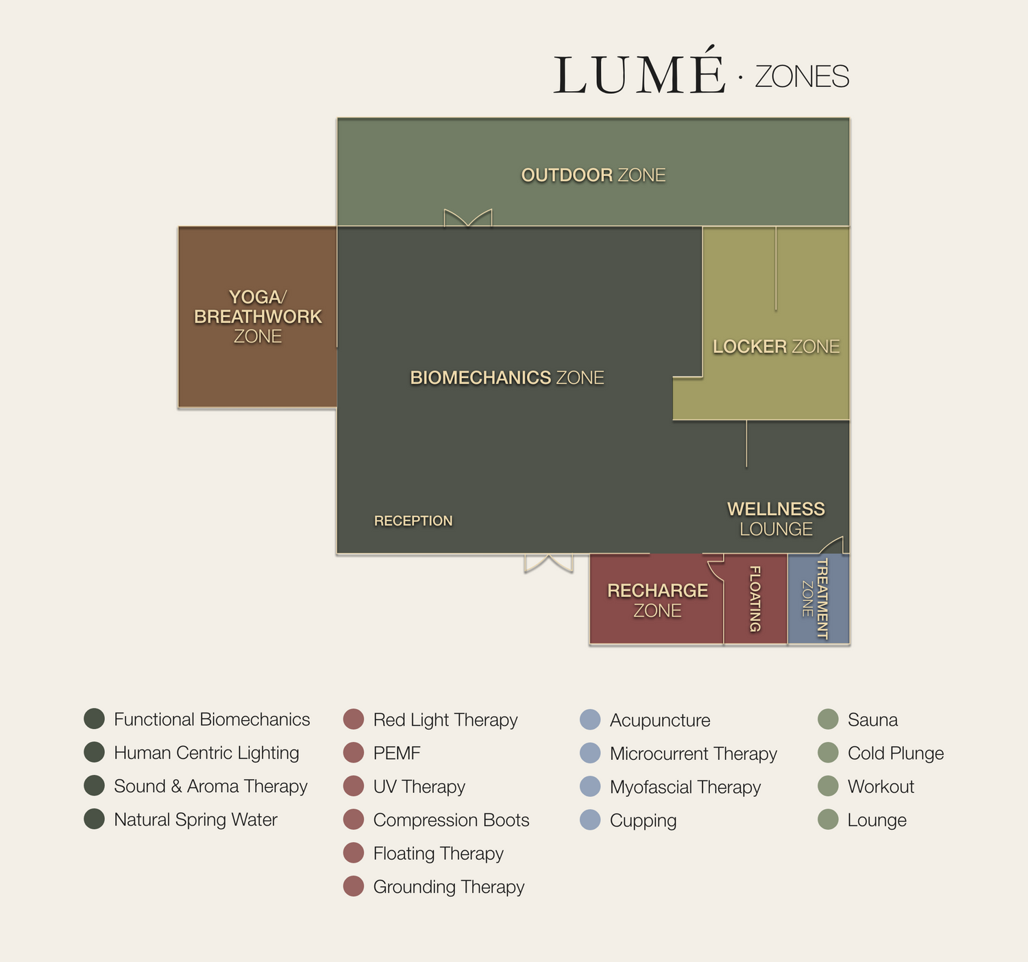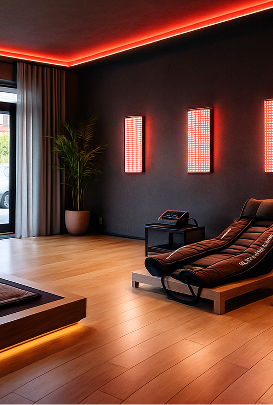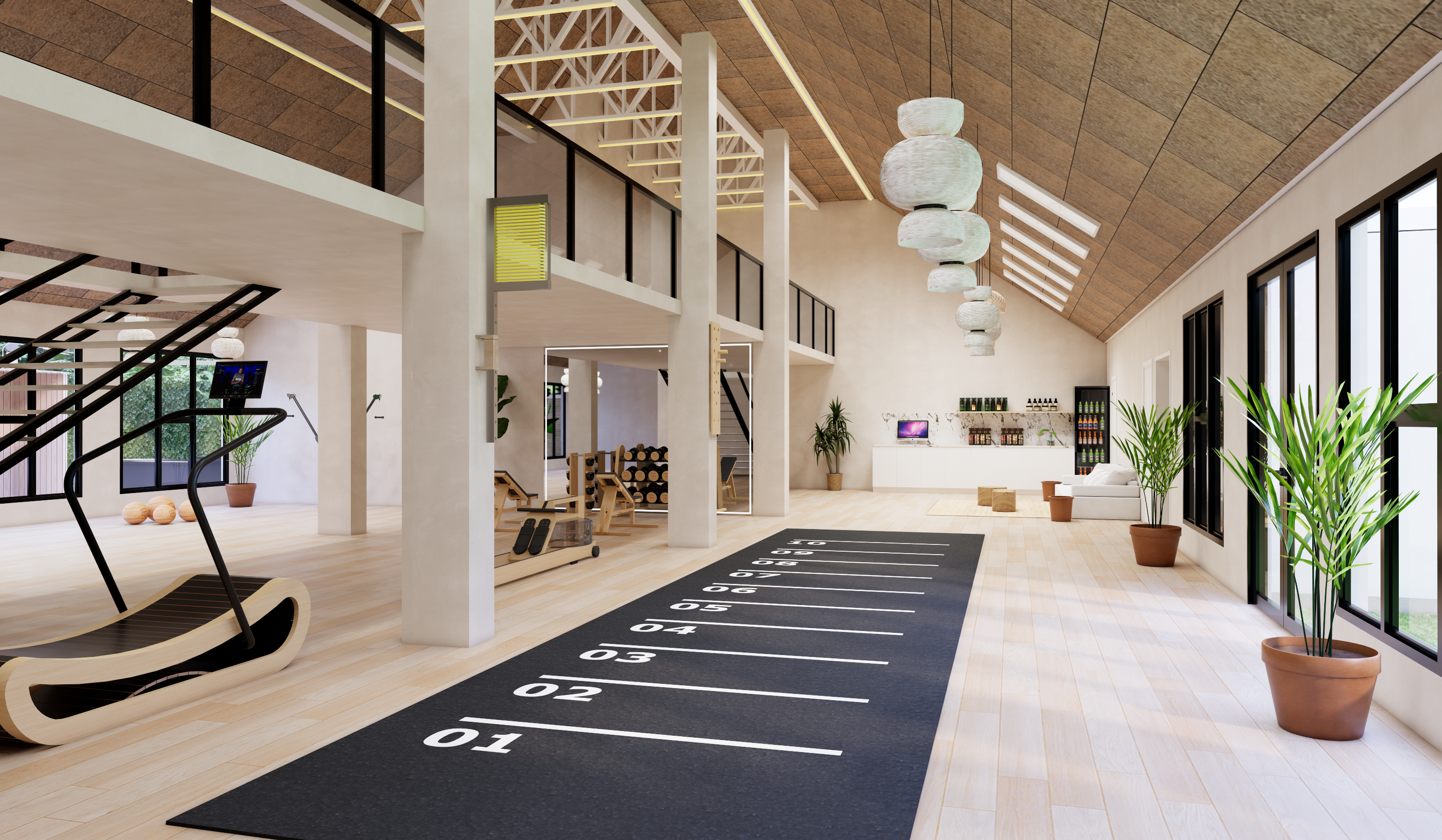 And as the first gym in the world, we pair this with a calibrated lighting system that mirrors the natural rhythm of the sun, using full-spectrum light that shifts in wavelength and intensity throughout the day.